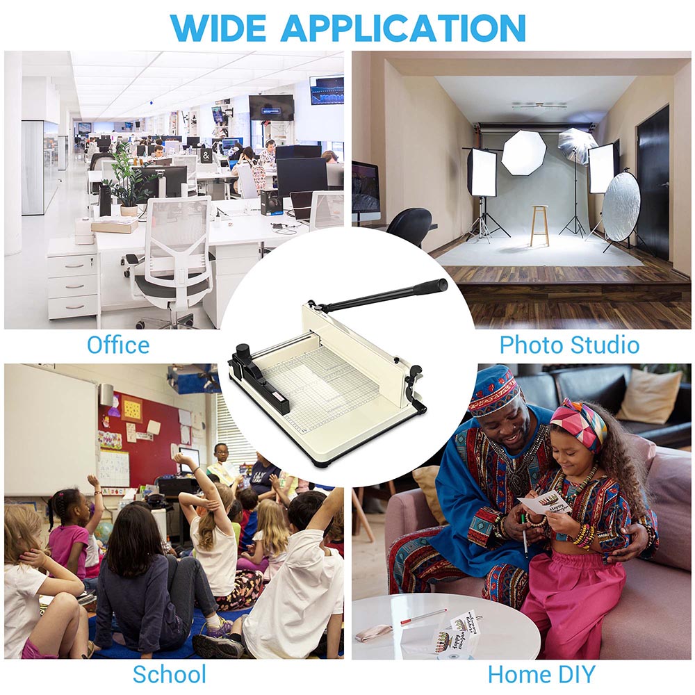 12" Heavy Duty Paper Cutter comes with a maximum cutting length of 12", allowing you to cut up to 400 sheets of 80gsm A4 paper at a time with high accuracy and efficiency.