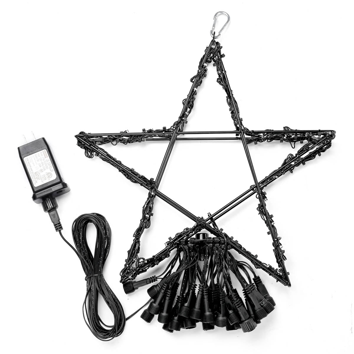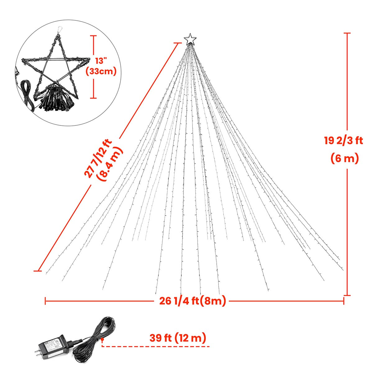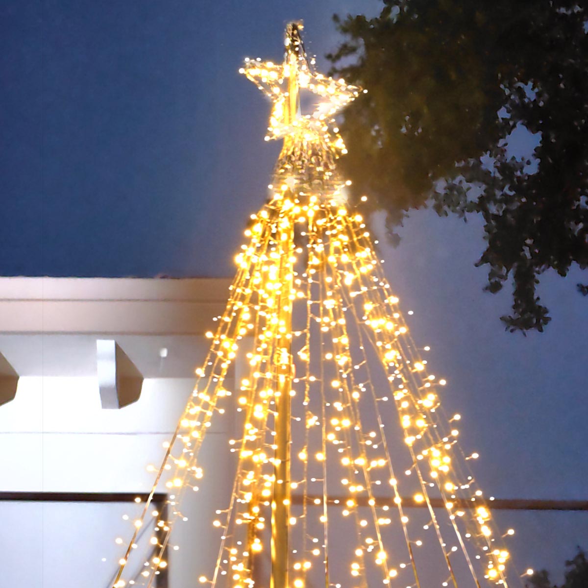 - 28 lines of string lights around a star finial that can be hung from a flagpole or pole to decorate your holiday season