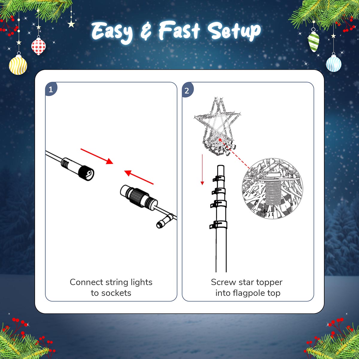- Easy to assemble by screwing star topper into a flagpole or stand(not included)