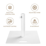 Maximize your outdoor space with our durable and weather-resistant Patio Umbrella Base. Made of heavy-duty steel and coated with rustproof material, it can withstand various weather conditions. The adjustable knob ensures a secure fit for poles of different sizes. Bring style and function to your patio with our base!