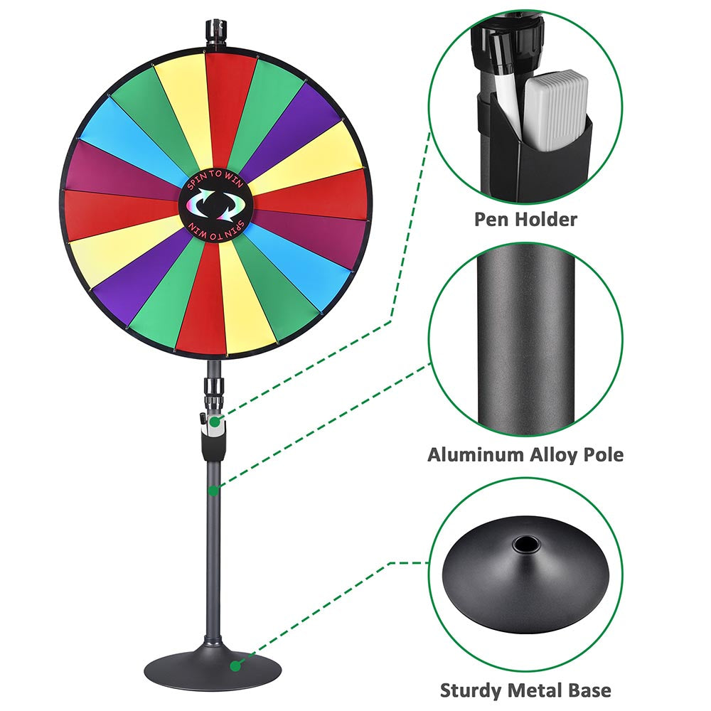 Want to gather crowds at your next trade show? Nothing beats playing a fun and colorful game of spin the wheel! Attract the crowds with our 36 inch Custom Spinning Wheel! You'll hear oooh's and ahhh's from the crowd, making it the perfect piece to have for parties, birthdays, anniversaries, shows and so much more!