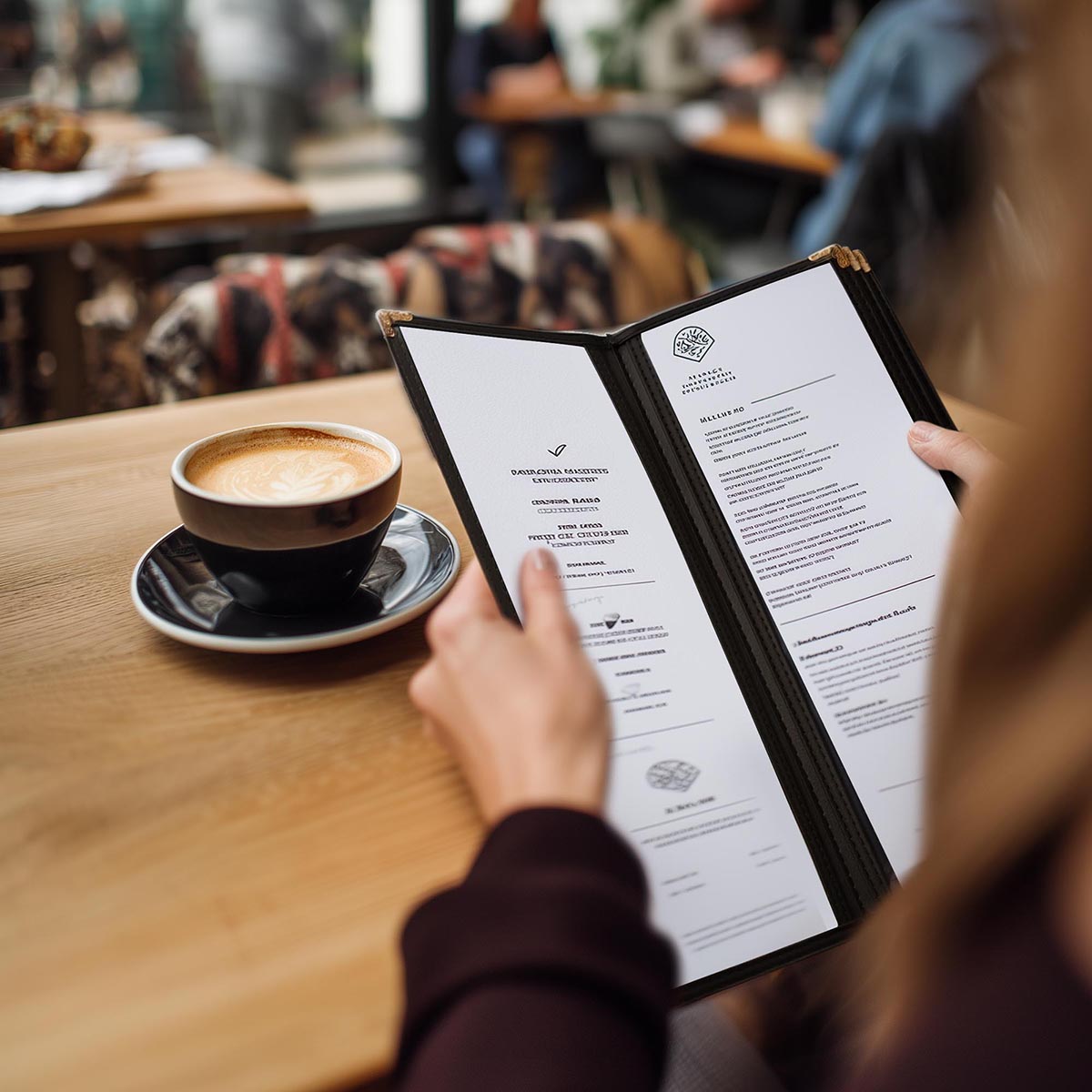 - Available in panel, booklet, and tri-fold styles with various page count options for clear & intuitive menu viewing