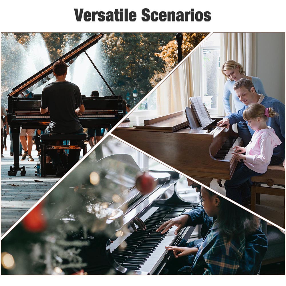 - The bench is suitable for grand pianos, upright pianos, digital keyboards, also ideal for piano teaching, homes, churches, schools, concerts, recording studio, music bands, orchestras, etc.