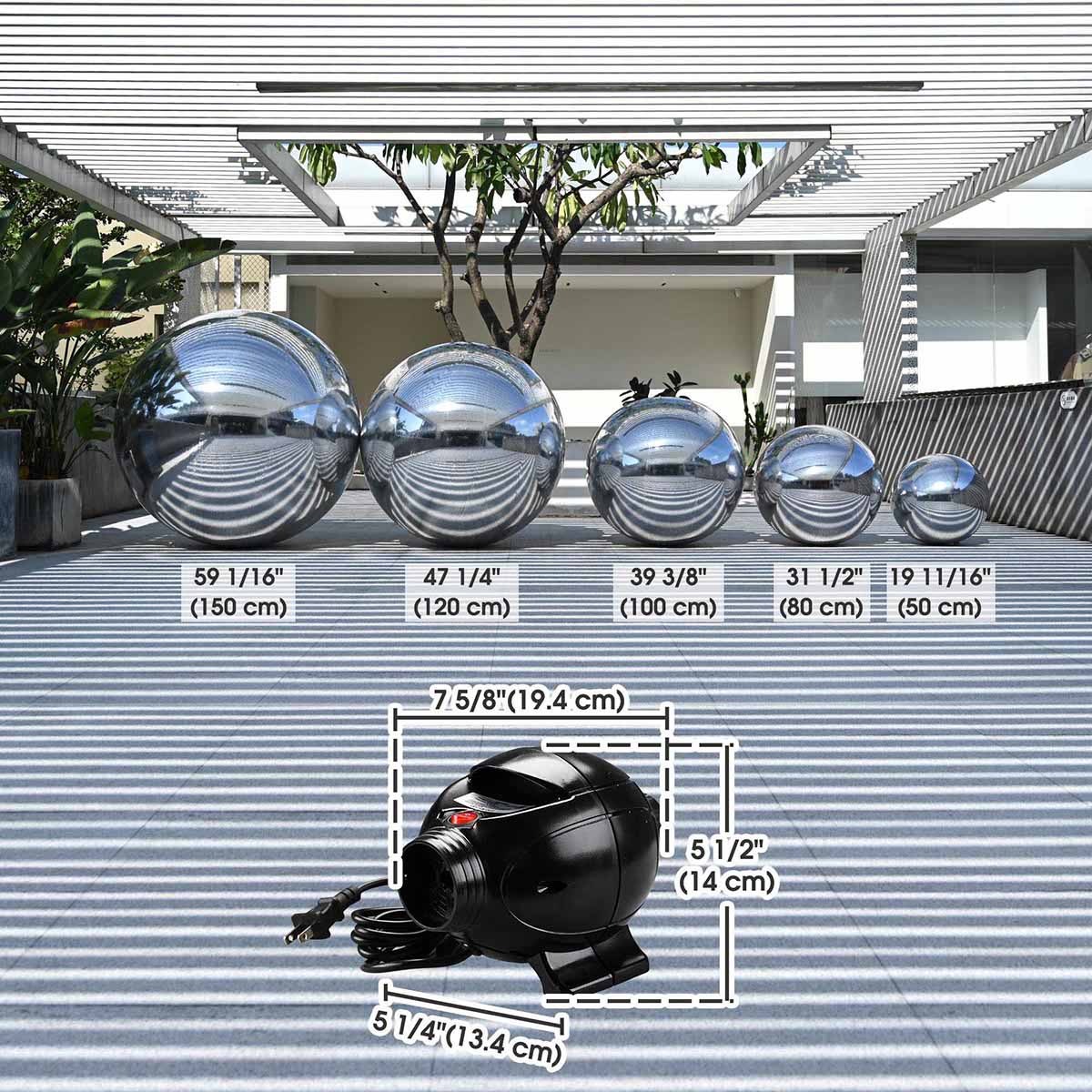 - Mirror Ball Diameter: 59 1/16", 47 1/4", 39 3/8", 31 1/2", 19 11/16" (150 cm, 120 cm, 100 cm, 80 cm, 50cm)
