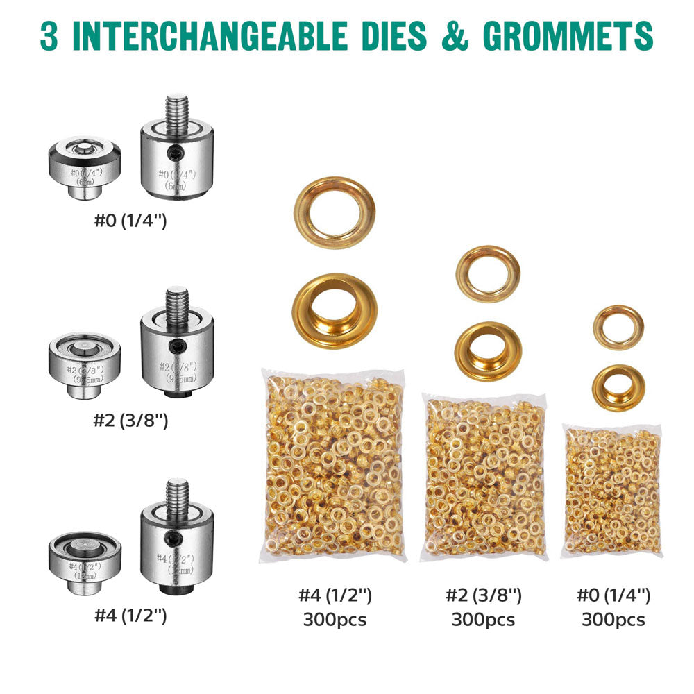 Brand New Industrial Grommet Machine with 3 Dies ( #0 #2 #4 ) and 900 Grommets