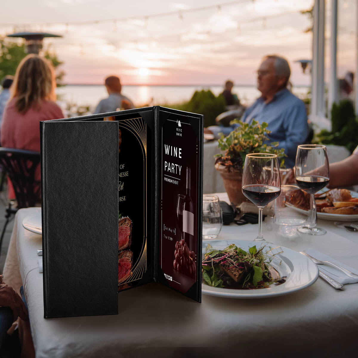 - Menu Cover Styles: Booklet-style, Tri-fold, Gate-view