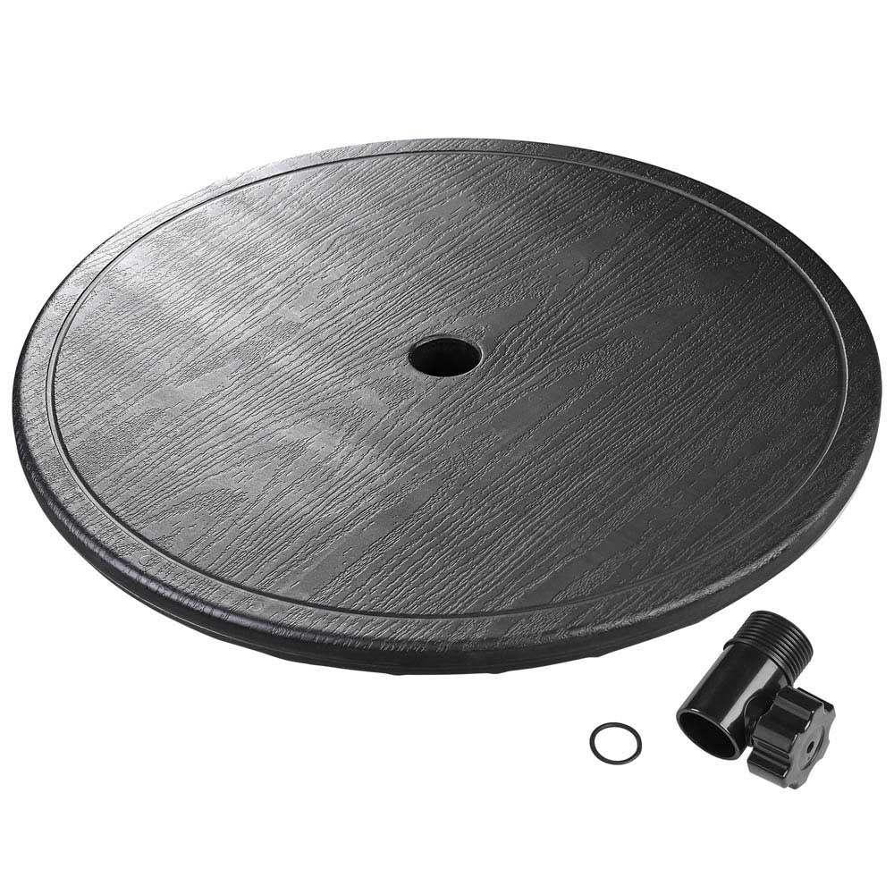- A rubber ring installed below the fastening nut to further addtional Stability while preventing the umbrella table from falling - Wide Application - Features rustic wood grain patterns in black finish for adding a touch of elegance to your outdoor space, making it ideal for your backyard, deck, gardens, poolside, beaches, and camping, also suitable for commercial use such as alfresco restaurants, outdoor cafes, high-end hotels