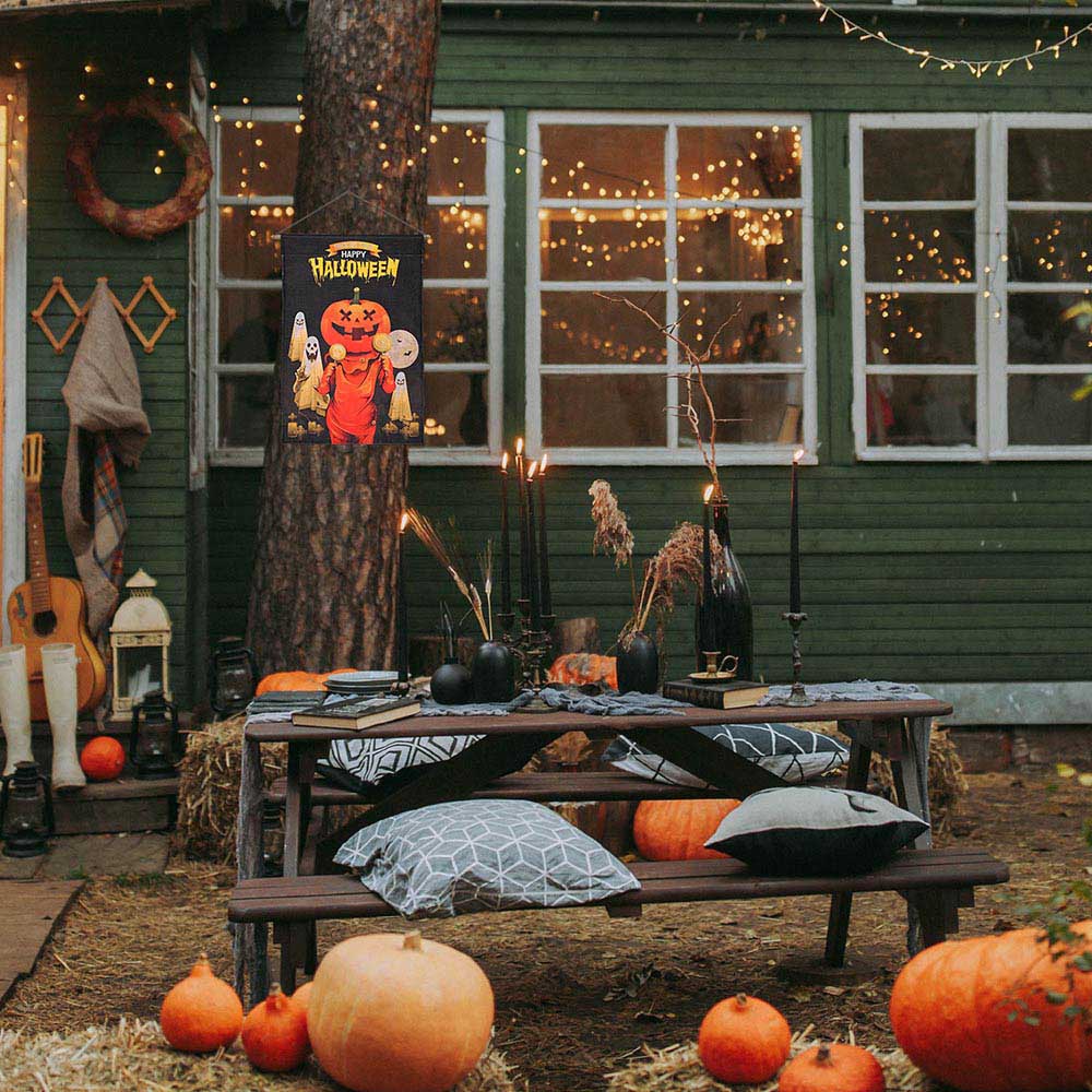 TheDisplayOutlet 12x18 Yard Flags for Halloween Decoration. Made of durable cloth with double sided printing, creates a charming and eye-catching decoration for your patio, deck railing, backyard, porch, garden. A must add-on for Halloween Party.
