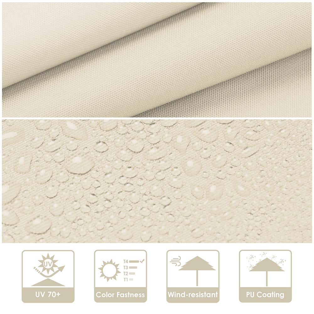 - Umbrella Canopy made of 220g yarn-dyed fabric with PU Coating features UV70+ to effectively block more than 90% of UV light, and water resistance