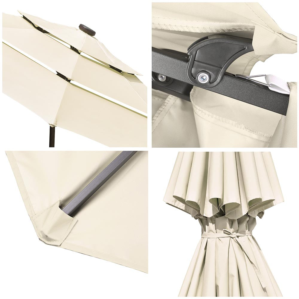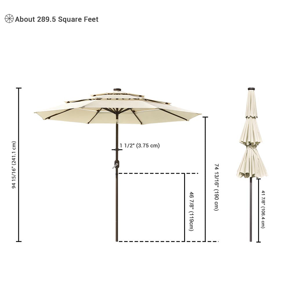 - 9 ft 3 Tier Patio Umbrella with 3 LED lights on each ribs
